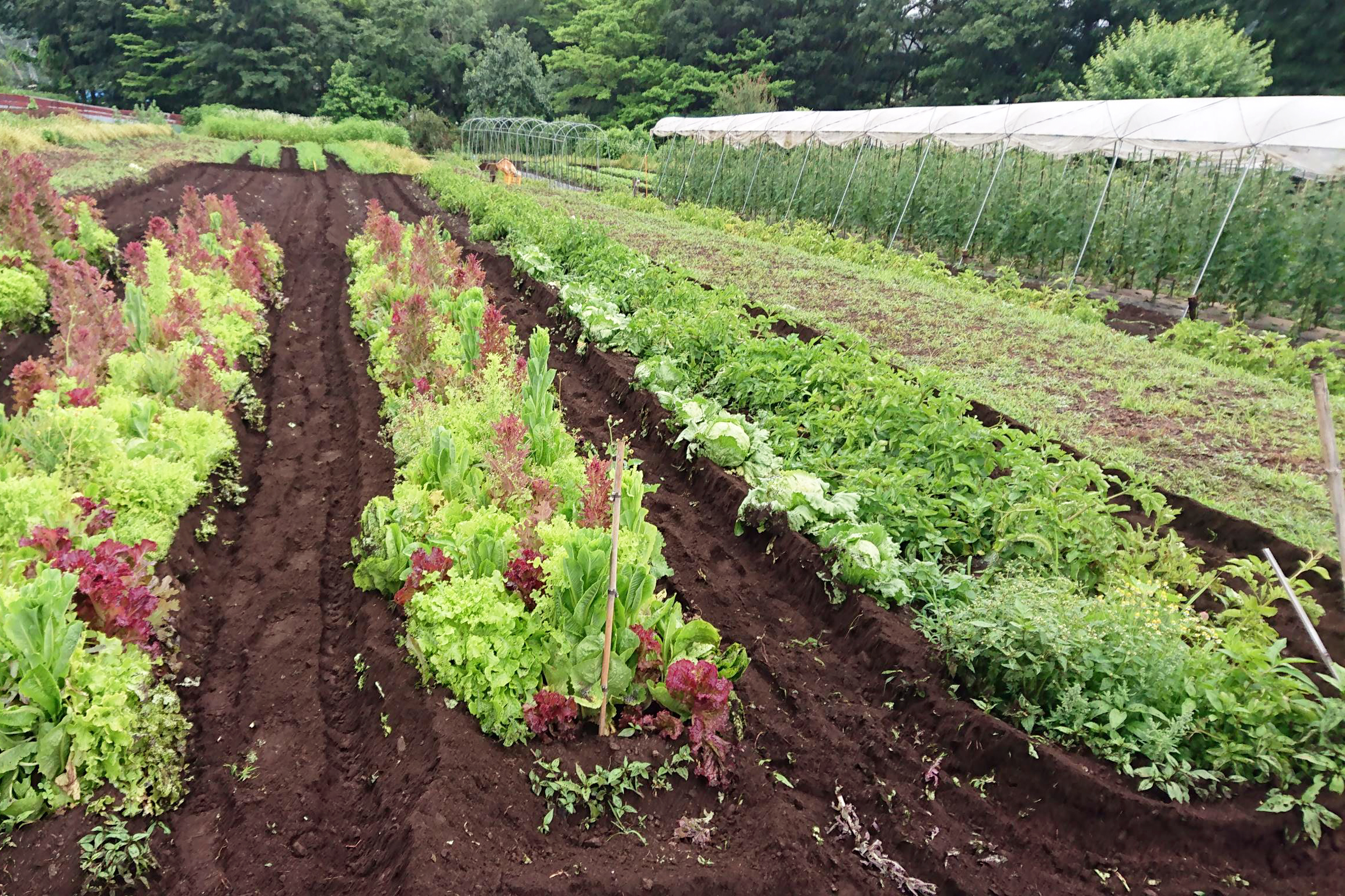 ・葉もの野菜、レタス、じゃがいも、奥は人参です。